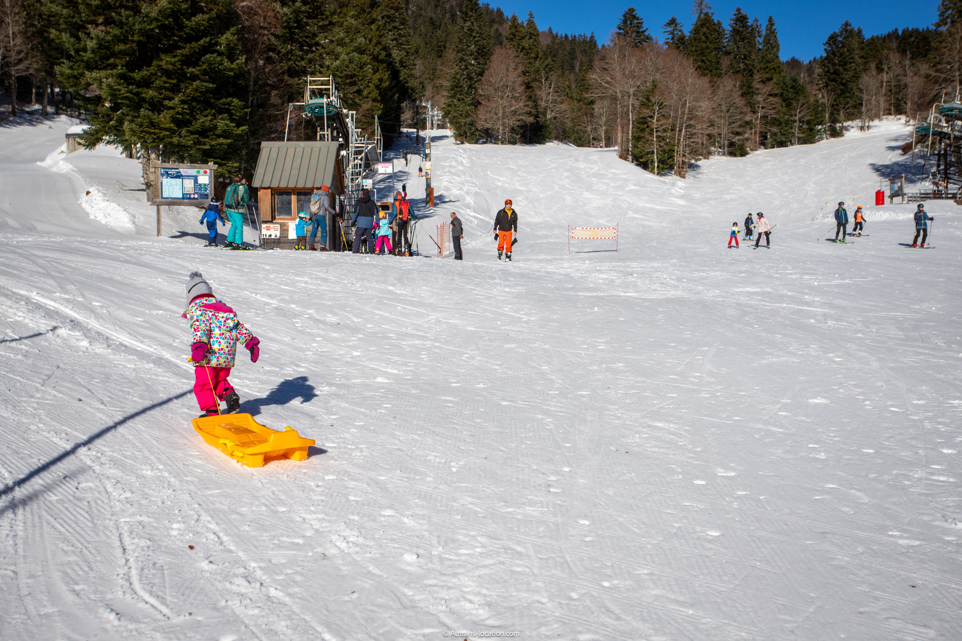 L’accès se fait depuis le village d’Autrans par la route du Vercors, avec une montée progressive qui met déjà dans l’ambiance. Selon la période, un stationnement à proximité du front de neige et des solutions locales de transport peuvent faciliter l’arrivée. Une fois sur place, la lecture du domaine est intuitive : le front de neige sert de point de départ et de retrouvailles, les pistes serpentent en forêt avant de rejoindre des secteurs plus ouverts qui offrent des points de vue remarqués.